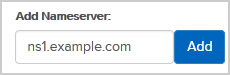 6. Navigate to Add Nameserver and enter our nameserver in the text field (for example, ns1.example.com). Then click the Add button. Repeat this to add our 2nd name server.