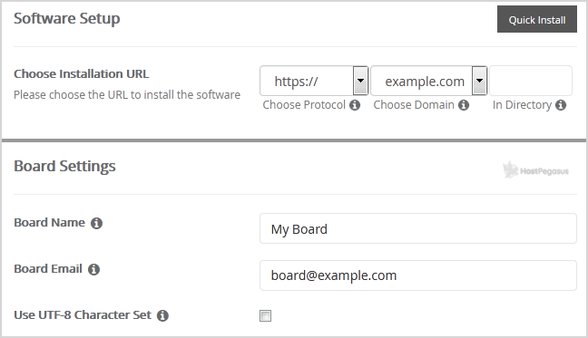 • Choose Installation URL: Choose the appropriate protocol/domain. Inside the "In Directory" field, should you want to install this in a directory, i.e., example.com/directory, enter the directory name. Otherwise, leave it blank to install in your main domain, i.e., example.com