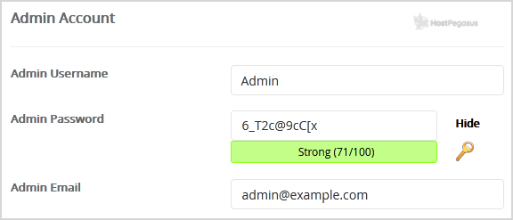 • Admin Username: Your new AEF username (for security reason do not use the Administrator or the Admin username.)